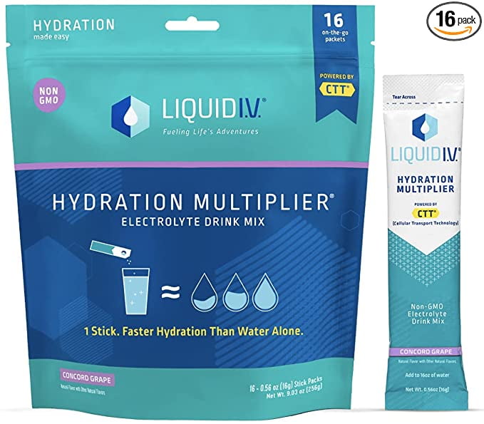 Liquid I V Hydration Multiplier Concord Grape Hydration Powder Packets Electrolyte Drink Mix Easy Open Single Serving Stick Non Gmo 16 Sticks Walmart Com